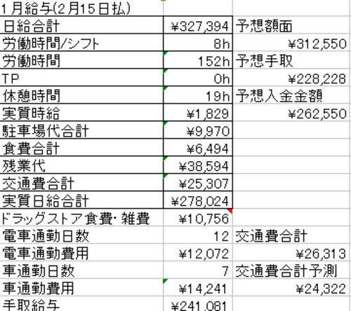 【派遣社員】手取24.1万 ※所謂手取りから、交通費と交際費を引いたもの。雑魚派遣なので交通費自腹・・・ 1月も労働日が19日のため、手取が25万を切ってしまった。 12月に続いて1月も低い手取りで雑魚労働者としてとても悲しい・・・ 私は混雑した電車が大嫌…
